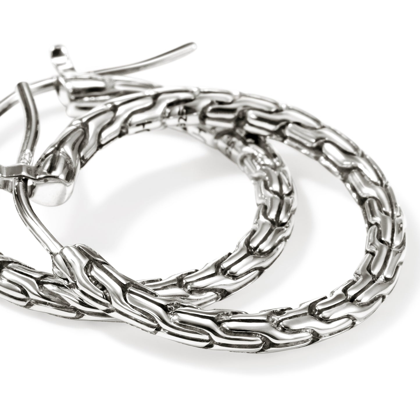 The perfect hoops. Artisan handcrafted in reclaimed sterling silver inscribed with the iconic JH chain motif.